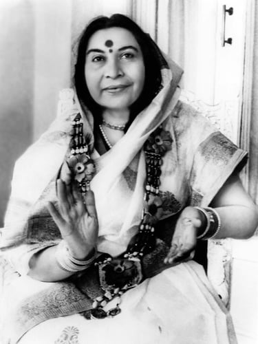 We are very fortunate because on 21st March 1923 a little girl, Nirmala was born Fully Realised (Knowing the Knowledge) to a wealthy family in India. At the time India was fighting for its freedom and her parents gave up all their wealth as many did and joined Mahatma Gandhi. When freedom had been won Nirmala trained as a doctor and then married Chandrika Srivastava and they had two daughters. In 1970 after her daughters were married Nirmala saw how many Seekers of Truth were travelling to India to follow gurus or gurus were coming from India and the Westerners were following what they had to say. Unfortunately a lot of what was said either was not real Knowledge or/and in some cases harmful to our Subtle Systems.